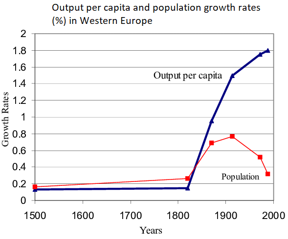 Declining fertility rates likely played a role in increases in wages in late nineteenth century Britain. Education and fertility rates tend to be correlated, along with improvements in health. Thus, as population growth declined and societies escaped from their Malthusian shackles, income per capita rapidly rose.