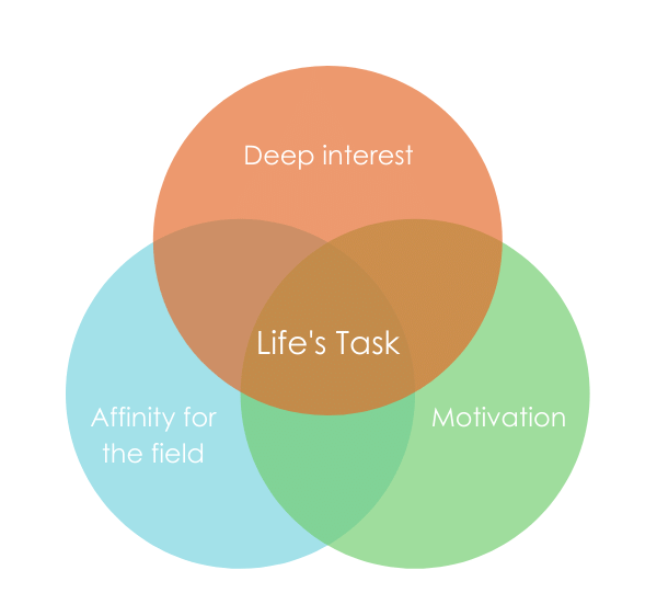 Getting good at anything is obviously not easy, it takes a vast amount of work and effort. So, the first step on the journey to mastery is in finding one's life's task — a vocation or pursuit that resonates deeply with an individual's inner passions. There is something for all of us to focus on and achieve mastery, a task to devote your life to. Greene states that one would “recognize it when you find it because it will spark that childlike sense of wonder and excitement; it will feel right”. Not choosing it could lead to the “false path”, which is one that does not align with your “deepest inclinations” and ultimately lead to regret.